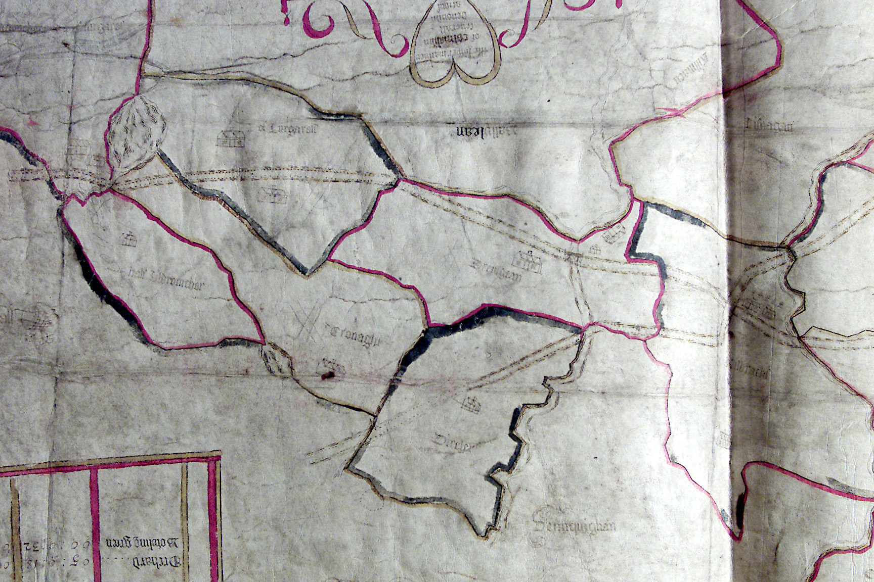 Sir Nicolas Acheson commissioned Owen Swann to make the accompanying map of 'Lower Colmalish Manor' in 1693. This is the area around present-day Markethill and stretching south to below Mowhan. The original is in the Public Record Office, Belfast (D/384/2).